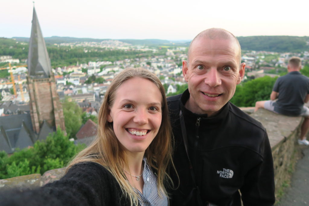 Beim engen Wendeltreppenabstieg von der Stahlkuppel des Denkmals, kommen mir von unten zwei adipöse extrem übergewichtige ältere Damen entgegen- völlig am Ende Ihrer Kondition- ich denke mir – seit fett zu einander- so will ich nie nie enden. Ich zwänge mich an beiden klatschnass triefenden im Notfallmodus atmenden Damen freundlich grüßend vorbei. Ich bin innerlich stolz auf meine schlanke sportliche Sonja, die mir 3 Kinder geboren hat – und kein Pfannekuchen geworden ist.